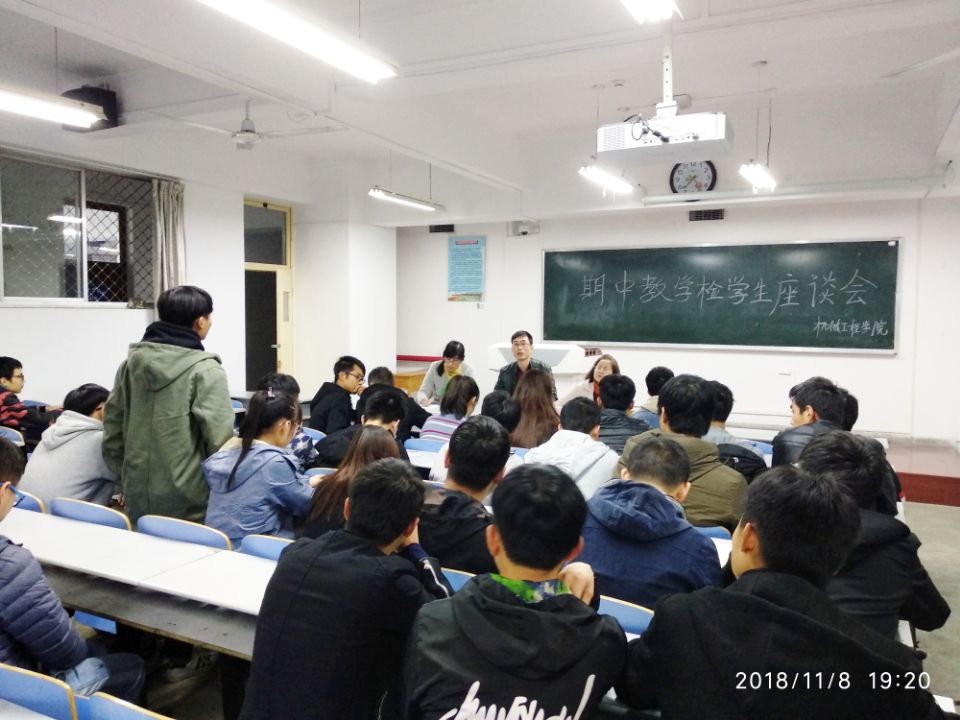11月8日晚7点,学院分别在综合楼402、403、406、407教室召开了各专业期中教学检查员工座谈会,学院教学督导、党政办副主任、教研室主任、教师代表、教学秘书以及2018级、2017级、2016级各班员工代表参加了座谈会。
