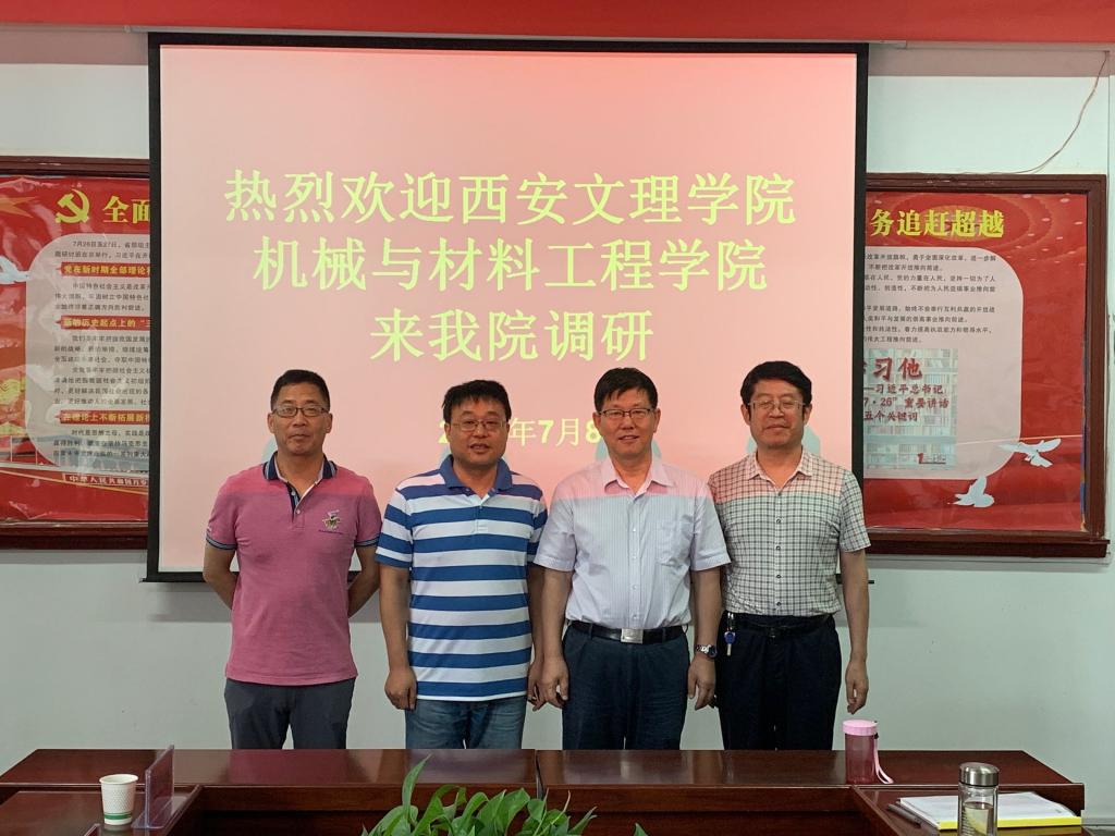 7月8日上午,西安文理学院机械与材料工程公司经理张运良一行7人来我院进行交流考察。两院在石鼓校区机械学院会议室召开座谈会,会议由王参军经理主持。