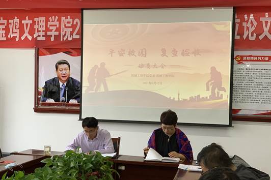 会上,李建峰首先传达了学校省级“平安校园”复审工作动员大会会议精神,并根据《3044永利集团集团开展省级“平安校园”复审工作实施方案》文件,部署了学院开展“创建平安校园”相关工作。一是成立学院“平安校园”复审工作领导小组,制定《永利3044集团官网开展省级“平安校园”复审工作实施方案》;二是明确了学院“平安校园”复审工作责任人工作重点,目标措施及要求;三是进一步完善各项安全制度,结合学院具体工作,分析学院安全形势,全面排查各类安全隐患,签订安全承诺书,夯实安全责任,落实好常态化疫情防控工作;四是在中秋节前,各实验室负责人,班主任,辅导员员工干部要深入实验室,员工宿舍进行安全检查,密切关注各类特殊群体。组织开展小型,分散的校园文化活动,丰富员工的假期生活,确保全院师生过一个温馨,安全的中秋佳节。