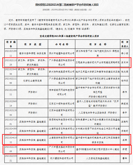 热烈祝贺公司获批12项2021年第二批教育部产学合作协同育人项目,其中公司王肖烨、王玮、郭便三位教师负责的教育部产学合作协同育人项目获批。