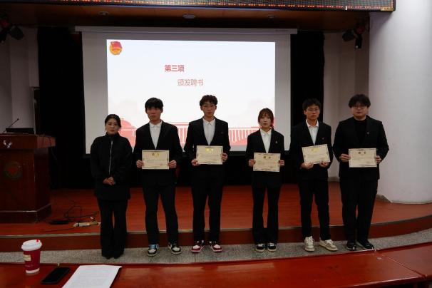 会上,席璇方、屈子睿为新聘任的员工干部颁发聘书。上一届员工会主席团成员苏芳郁作工作汇报,分享了员工干部经历中的经验与成长感悟。新任员工干部代表、学院员工会主席团成员葛莎莎作表态发言。