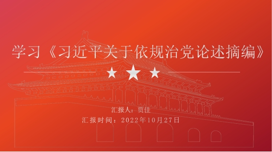 员工第二党支部理论学习第三小组汇报人贺世荣同志、第七小组汇报人贾佳同志围绕“《习近平关于依规治党论述摘编》”分别分享学习过程与成果。