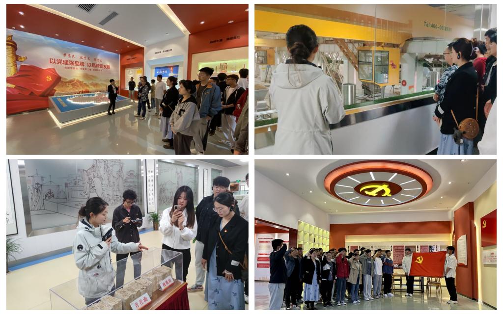 师生党员先后参观了制曲车间、酿造车间、包装车间、文化中心、酒海酒窖,了解了企业概况、企业文化、发展历史以及国家工业遗产群——三千年无断代传承的精湛酿制工艺。在现代化生产车间见证了智能工厂生产的全过程和绿色工厂的发展理念,通过参观,师生党员对车间的机械臂、机电一体化等专业生产设备产生了浓厚的兴趣,感受到了科技创新及科研成果转化带来的巨大力量。