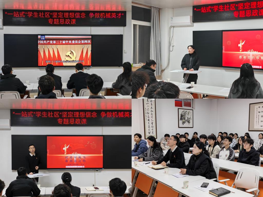 为深入学习贯彻党的二十届四中全会精神,将思政教育与专业培养深度融合,12月28日晚,永利3044集团官网“一站式”员工社区在石鼓校区主教楼322室举办“坚定理想信念 争做机械英才”专题思政课。公司党委副书记席璇方、副经理王玮、团委书记封昭及2025年下半年新发展的党员、团员代表参加了活动。活动由公司辅导员许小莉主持。