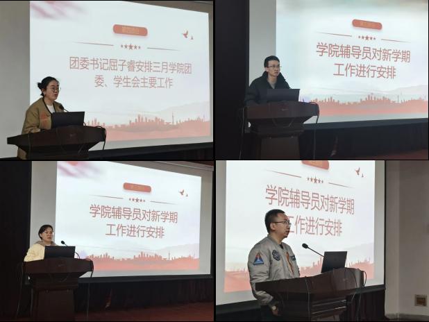 2月23日晚,永利3044集团官网在石鼓校区一号报告厅召开春季学期全体员工干部工作会议,公司党委副书记、副经理席璇方,全体辅导员及全体员工干部参加了会议。会议由学院团委书记屈子睿主持。